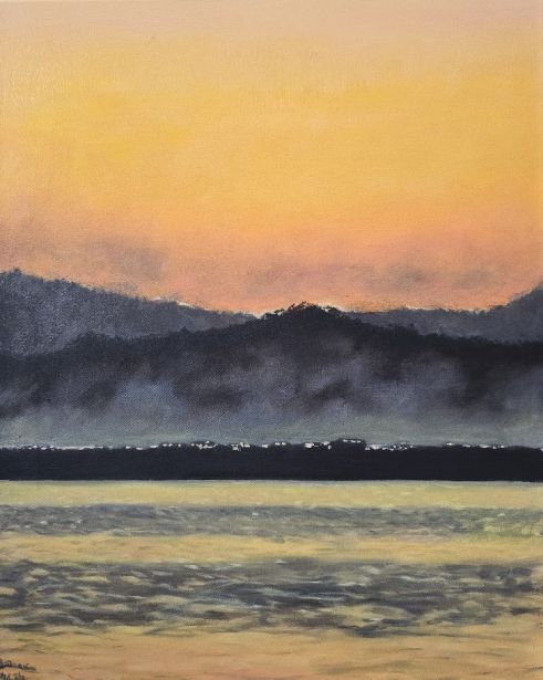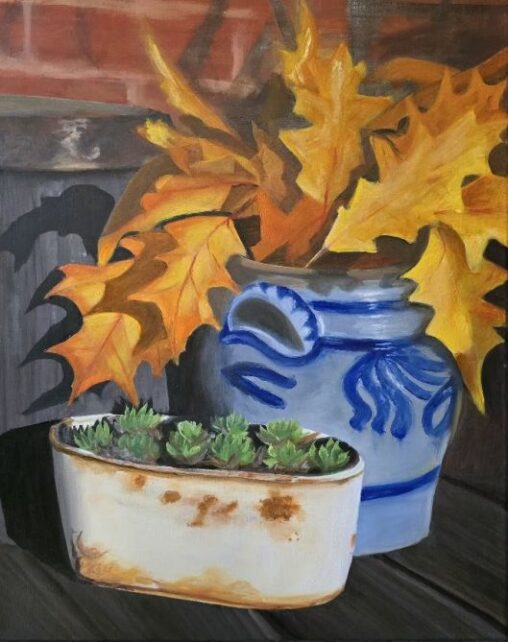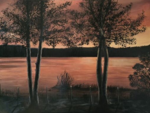 Rozmiar 57 x 75 cm Farby olejne. Podobrazie: karton na płycie Pierwszy i ostatni obraz namalowany na kartonie. Dla wyrównania obraz został przyklejony na płytę. Nieciekawe podobrazie, namalowany…