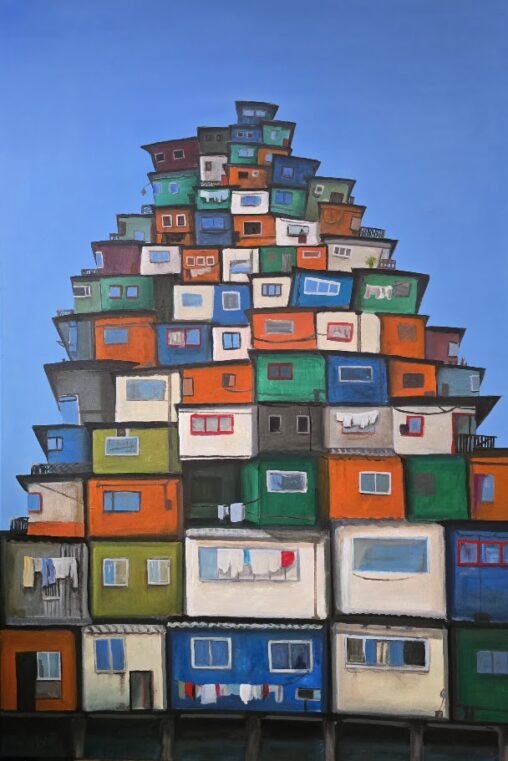 Babie Doły – Miejsce historyczne na mapie Gdyni, w którym znajdują się ruiny torpedowni. Obraz olejny na płycie 62×88 cm Płyta oklejona gruntowanym płótnem