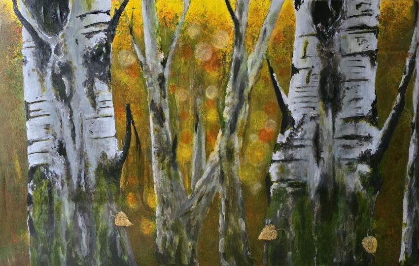 120 x 70 cm. Akryl + werniks damarowy. Obraz namalowany na sklejce z odzysku nierównej grubości 8-12 mm. Nierówna struktura powierzchni.
