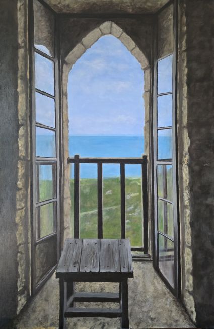Obraz na płótnie 80 x 160 cm Technika mieszana: podmalówka akrylowa, laserunki olejne, werniks damarowy Data namalowania 05.05.25